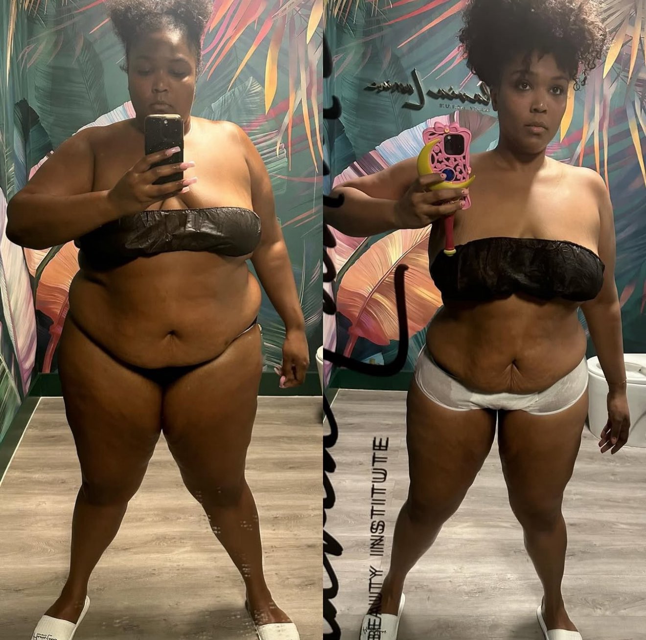 A művésznő úgy fogalmazott: „A bal oldali fotó az első alkalomról van, amikor Flaviától kaptam nyirokmasszázst, a jobb oldali pedig a legutóbbi! Mivel mostanában annyi magazin és blog azt akarja, hogy mindenképp ozempicet szedjek… hát itt az igazság! Keményen dolgozom a testemen: heti háromszor edzek, minden nap szauna és kardió, visszahoztam az állati fehérjét az étrendembe, van egy séfem, aki segít előkészíteni az ételeimet, figyeli, hogy mit eszem kalóriadeficitben, lemondtam a cukros Starbucksról, a teljes zsírtartalmú üdítőkről és a chipsről… nagyon sokáig nem is ittam alkoholt… (de most újra iszom, mert kiérdemeltem!)… pickleballozom, túrázom, sétálok a tengerparton, mozgok, táncolok, vizet iszom. Méregtelenítek! Havonta egyszer! Emellett járok holisztikus kezelésekre, famasszázsra és nyirokmasszázsra. Nagyon boldog és büszke vagyok arra, amit elértem, és ezt senki nem veheti el tőlem. 😇„